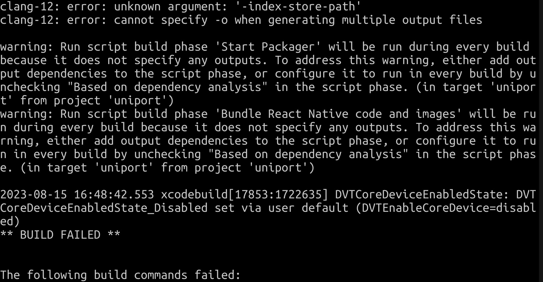 일단 어떤 프레임워크를 사용할지 정해진 이후에는 빠르게 사용을 시도해봤다. 문제는 오히려 여기서 터져나왔다. 지금까지 웹개발 상으로는 문제가 없었던 개발-빌드 과정이 React Native를 사용하면서 생겨난 것이다. 특히 ios 빌드에서 엄청나게 많은 에러가 발생했다.